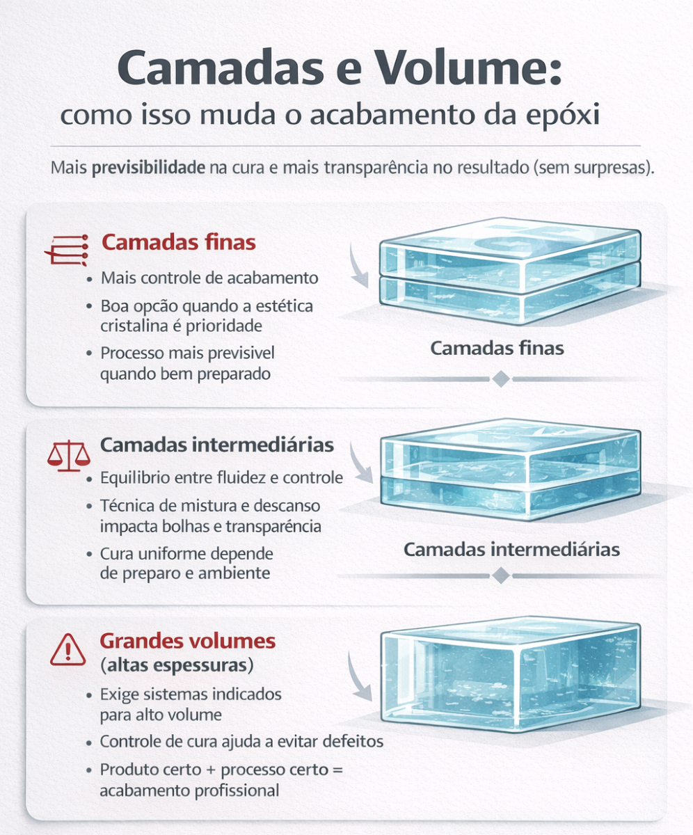 - Para grandes volumes, use resinas desenhadas para altas espessuras (há opções com proteção UV nessa linha), evitando problemas de cura e acabamento.